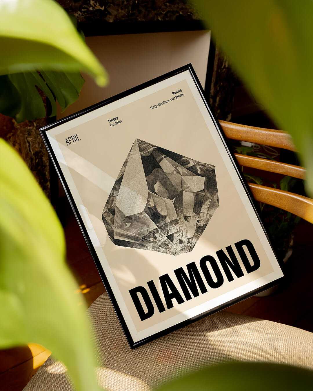 Our vintage-inspired April birthstone poster features a watercolour diamond illustration which combines positive energy with a classic infographic style.