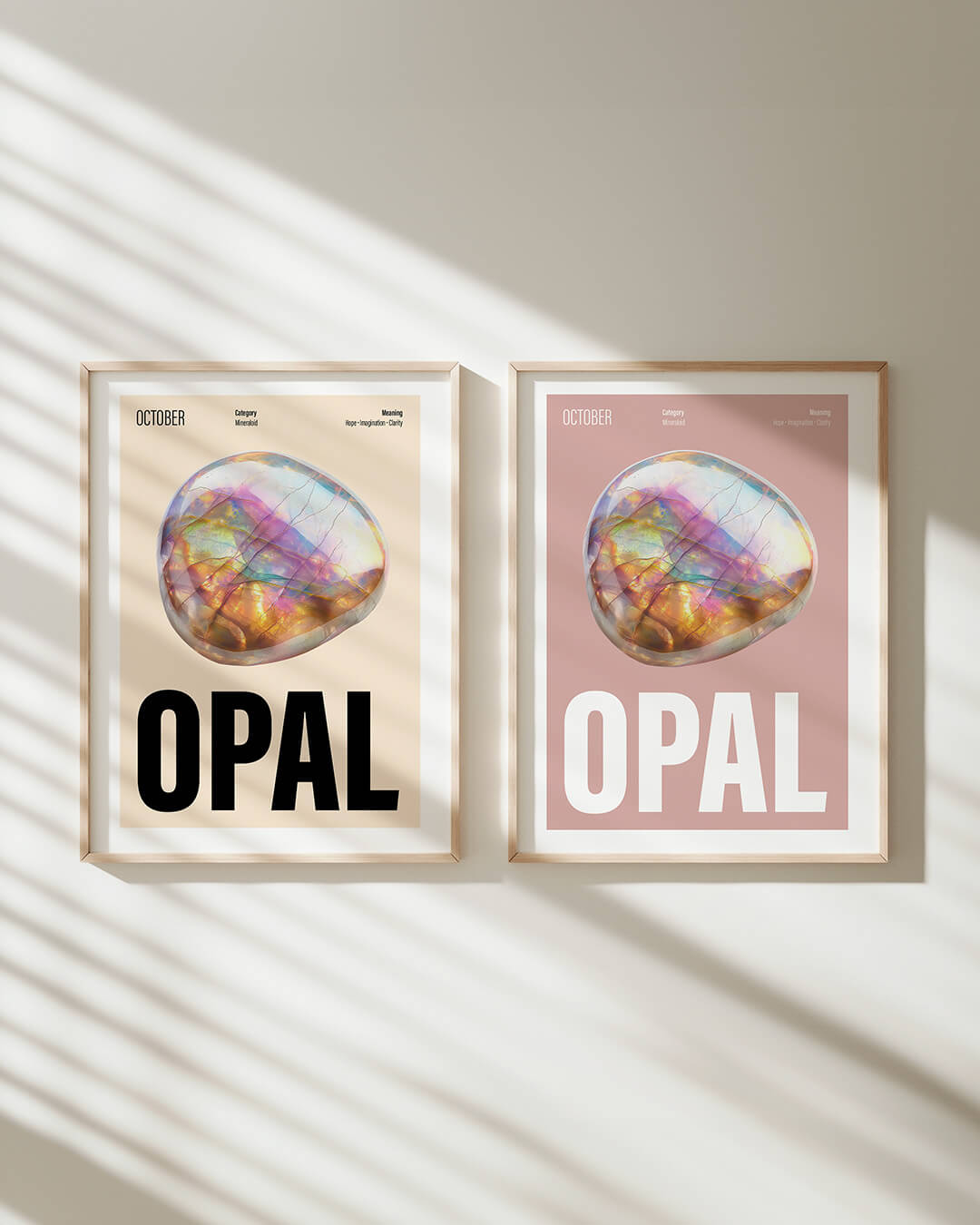 Our vintage-inspired October birthstone poster features a watercolour opal illustration which combines positive energy with a classic infographic style.