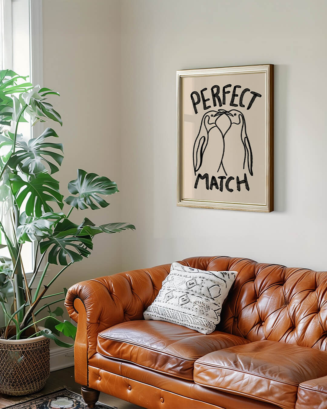Penguins are a symbol of lifelong partnership, making this hand-drawn print the perfect meaningful and unique gift for Valentine's Day, anniversaries or loved ones.